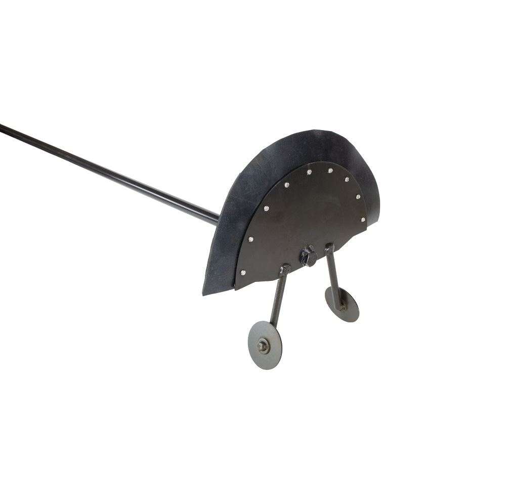Wheel pipe Scraper 12″ (300mm), designed for cleaning horizontal fluepipes. Operated by pushing within pipework (with rigid rods, 18 or 20mm). Fitted with 2 wheels for ease, scraper is then rotated 180 degrees and pulled back, a rubber flange allows for debris collection and protection of joints within flue.
